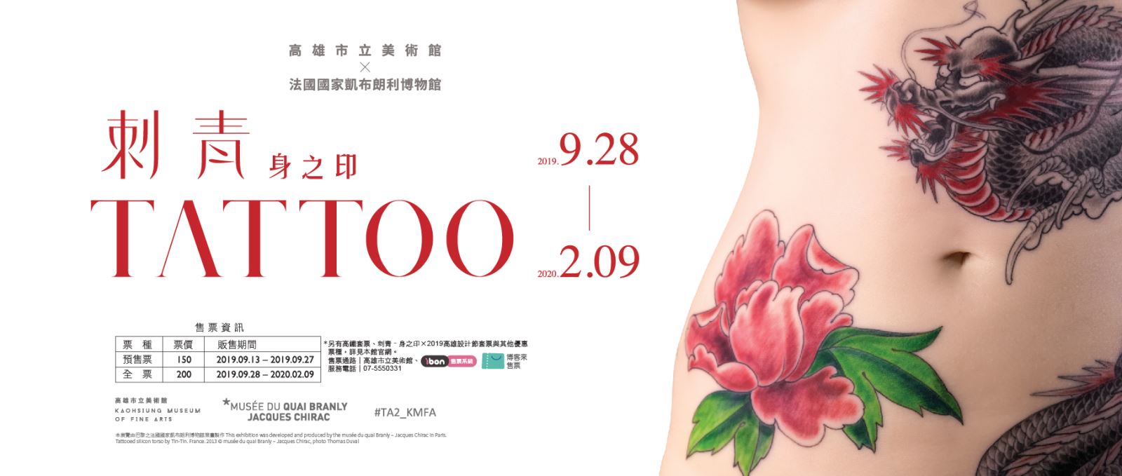 刺青,這項隨著人類文明演進5000年的身之印記,是由高美館首度和法 國國家凱布朗利博物館合作推出,超過200件展品,以宏大的時間與空間跨度,從人類文化發展的角度展現刺青的世界史,訴說浪漫與血淚的故事,展覽提出的跨域攻略展現身體特有的美學、技術操作與豐富的社會意涵,並藉此向當代的刺青藝術先鋒致敬。在台灣展出更加入在地視角,展現南島民族與當代刺青的樣貌。